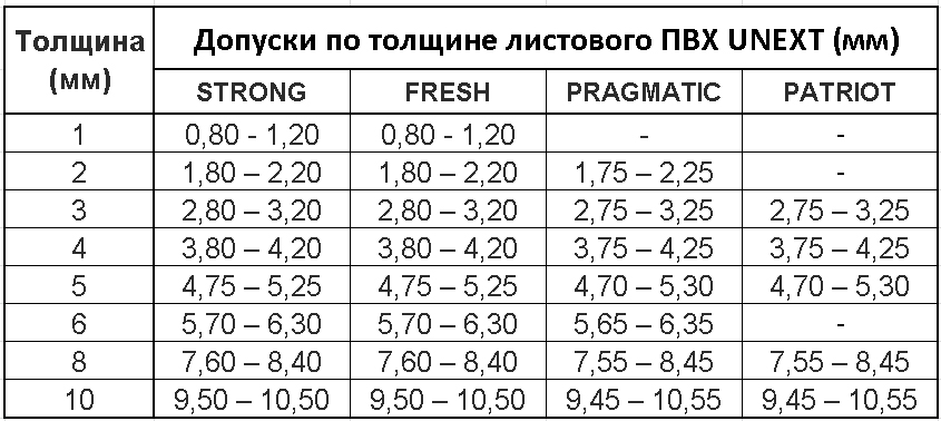 PRAGMATIC имеет регламентированные допуски по толщине, однако, они шире, чем у обычного ПВХ-листа.