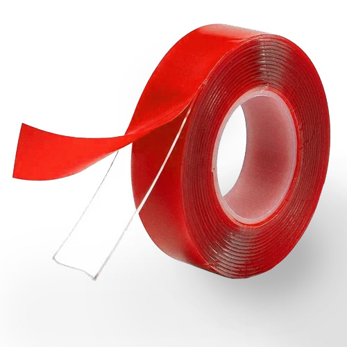 Двусторонняя лента ADHESER представляет собой двустороннюю клейкую ленту на основе прозрачного пеноакрила (вспененного акрилата) с полимерным лайнером красного цвета.