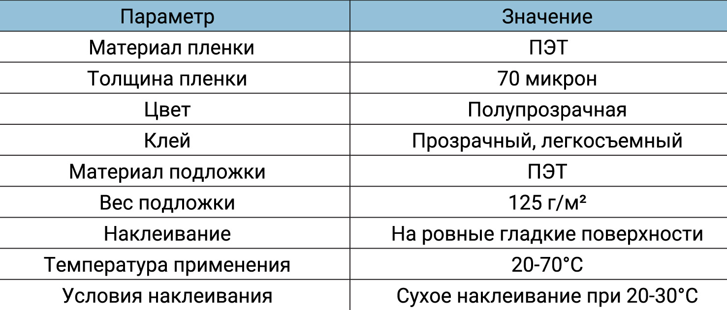 Рекомендуемая температура наклеивания для достижения наилучшего результата 20-30°С, относительная влажность - 50-60%.